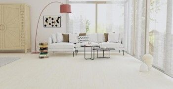 Четырехсторонняя фаска усиливает сходство с натуральным дощатым полом и делает помещение более современным.