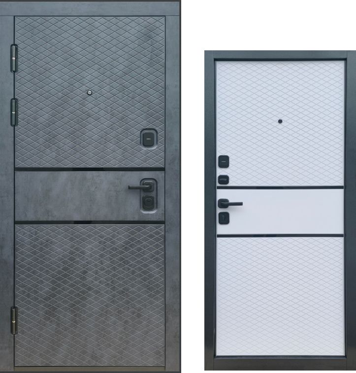 Бриллиант в мире дверей. Модель "Диамант ОНИКС" из премиальной линейки поражает своей роскошью и вниманием к деталям. Внешняя панель "Бетон темный" создает эффектный контраст с внутренней отделкой "Белый эмалит". Утолщенная МДФ-панель 22 мм внутри обеспечивает превосходную шумоизоляцию, а замки FORTELOCK и регулятор притвора гарантируют высочайший уровень комфорта и безопасности.